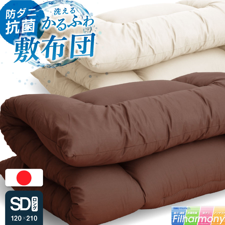 日本製 防ダニ抗菌防臭 敷き布団 セミダブル ロング (固綿なし) 洗える国産 敷布団 防ダニ 抗菌防臭 吸汗速乾 セミダブル 布団 軽い 単品敷き ウォッシャブル 東洋紡フィルハーモニー