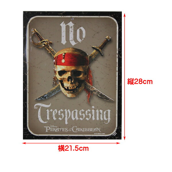 【商品詳細】 映画「パイレーツ・オブ・カリビアン」のブリキ看板! ドクロのエンブレムと、「 No Trespassing(立入禁止)」と書かれたデザイン! エンボス加工されていて、立体感があり、また、いたるところに「錆び」のテクスチャが描かれていて 「ビンテージ」を感じる商品です! 壁掛け用の穴がありますので簡単に取り付け可能です! 自室や店舗などインテリアとしてもオススメです! 【商品詳細】 ・サイズ(約):縦28cm×横21.5cm ・壁掛け穴:上部に1ヶ所 ※取り付け用ネジは付属しません 【関連商品】 ■他の看板はコチラ! 【ブリキ看板の注意事項】 ※新品未使用品ですが、薄い磨き傷が有る場合がございます。