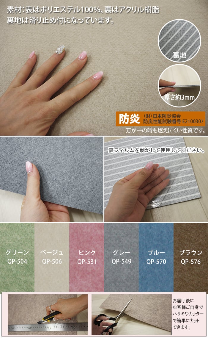 リック吸着パンチ 【反売り】 サイズ表 約90cm幅×30m巻 約180cm幅×30m巻 リック吸着パンチ 【切売り】 サイズ表 約90cm幅(1m単位) 約180cm幅(1m単位) →他の防炎カーペットはこちら防炎パンチカーペット リック吸着パンチ(R) 約180cm幅×30m巻き 日本製 リック吸着パンチ 【反売り】 サイズ表 約90cm幅×30m巻 約180cm幅×30m巻 リック吸着パンチ 【切売り】 サイズ表 約90cm幅(1m単位) 約180cm幅(1m単位)