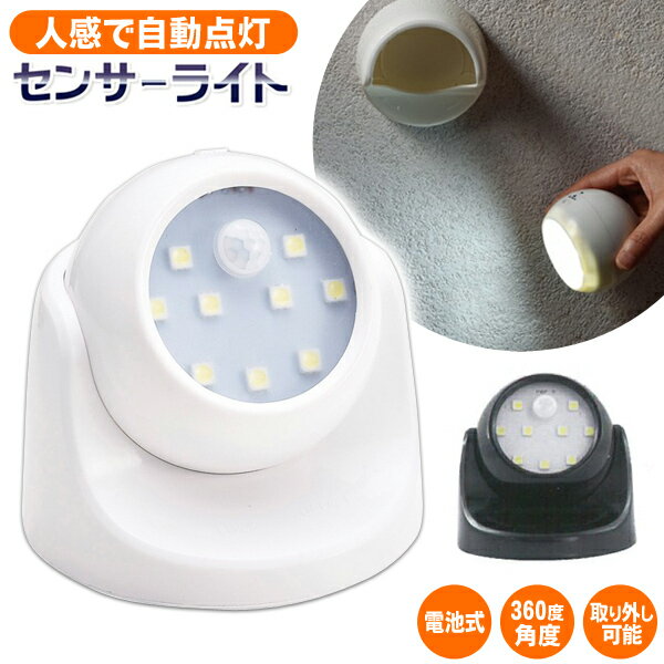 ネコポス送料無料 センサーライト LED 人感センサー ナイトライト 壁灯 丸型 小型 電池式 クローゼット キッチン 台所 玄関 ガレージ 階段 夜間 照明 ナイトライト