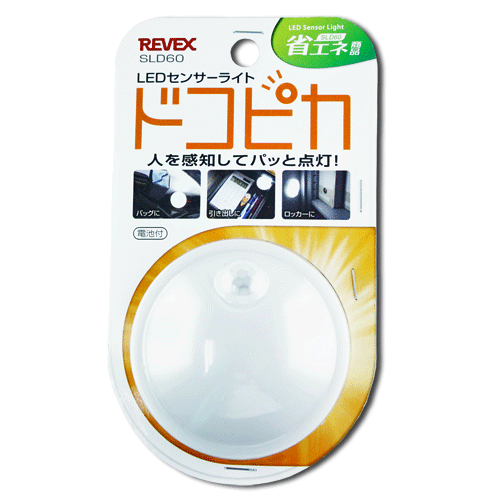 センサーライト 電池式 LEDセンサーライト ドコピカ SLD60【省エネ 小型 玄関 廊下 戸棚 バッグ 引き出し ロッカー 人感センサーライト ホワイト】REVEX リーベックス ※取寄せ品
