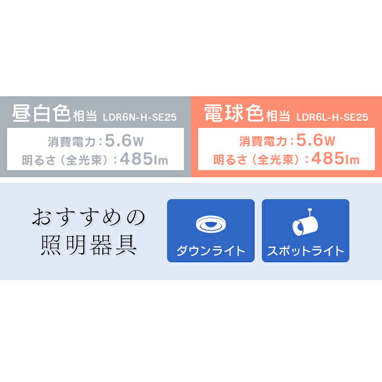 ●定格消費電力5.6W●待機電力0.2W●全光束485lm●ビームの開き120°●定格入力電流0.103A●設計寿命25000h●電源100V(50/60Hz共用)●使用場所屋内用●ランプ全体の明るさ一般電球40形相当●口金サイズE26●商品サイズ(cm)直径約6×高さ約10.6●質量約96g●カラーLDR6N-H-SE25:昼白色相当LDR6L-H-SE25:電球色相当(検索用:LED 電球 しょうめい あかり トイレ灯 でんきゅう 防犯 人感センサー 人感 じんかん センサー センサー付 電球色 昼白色 廊下 階段 トイレ 玄関 4967576432818 4967576432825)★